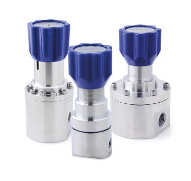 Membranregulatorer reglerar tryck upp till 10 bar (145 psi), medan kolvregulatorer täcker upp till 414 bar (6 000 psi). Finns med anslutningar från 1/2” till 1”. Främst för gasapplikationer.